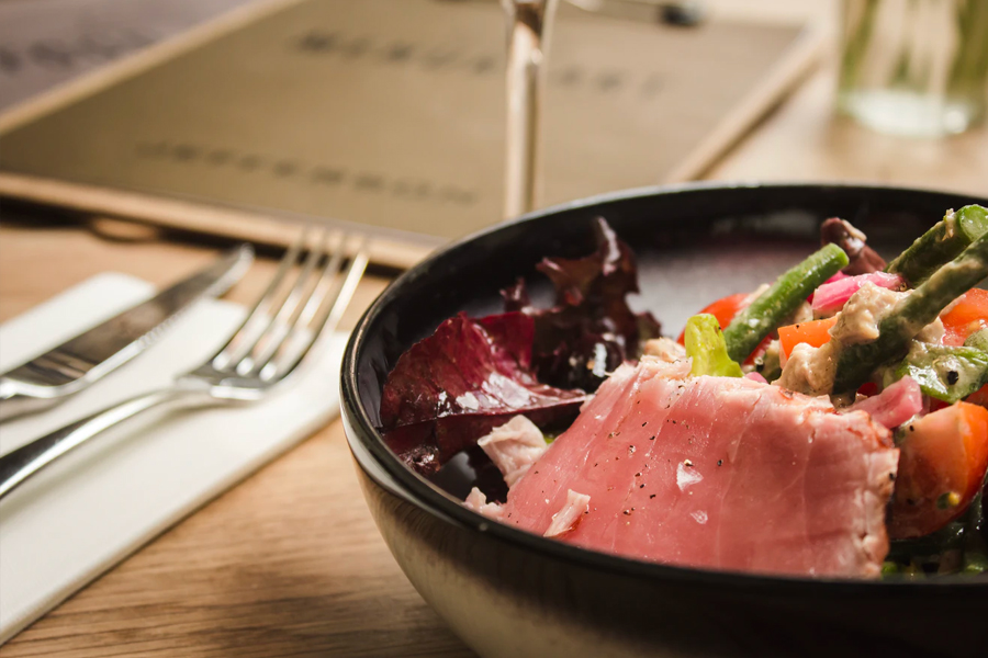 Turkey, bacon, avocado, lettuce and tomato on a sourdough served with seasoned fries
